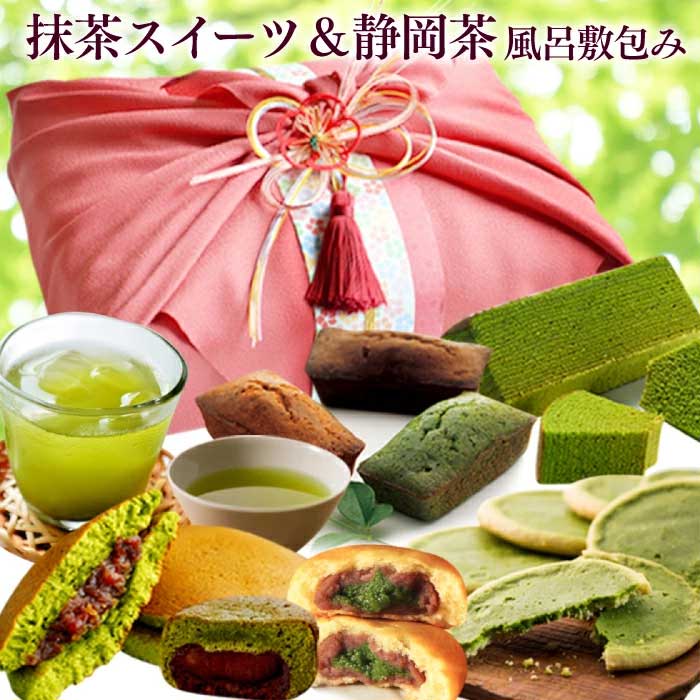 【送料込】竹かご風呂敷ギフト-白鳥-(抹茶スイーツ4種詰め合わせ)