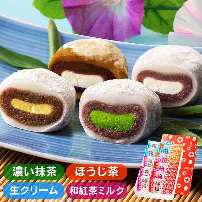 【冷凍送料込】生クリーム大福 鞠福4種10個入(濃い抹茶・ほうじ茶・生クリーム・和紅茶)