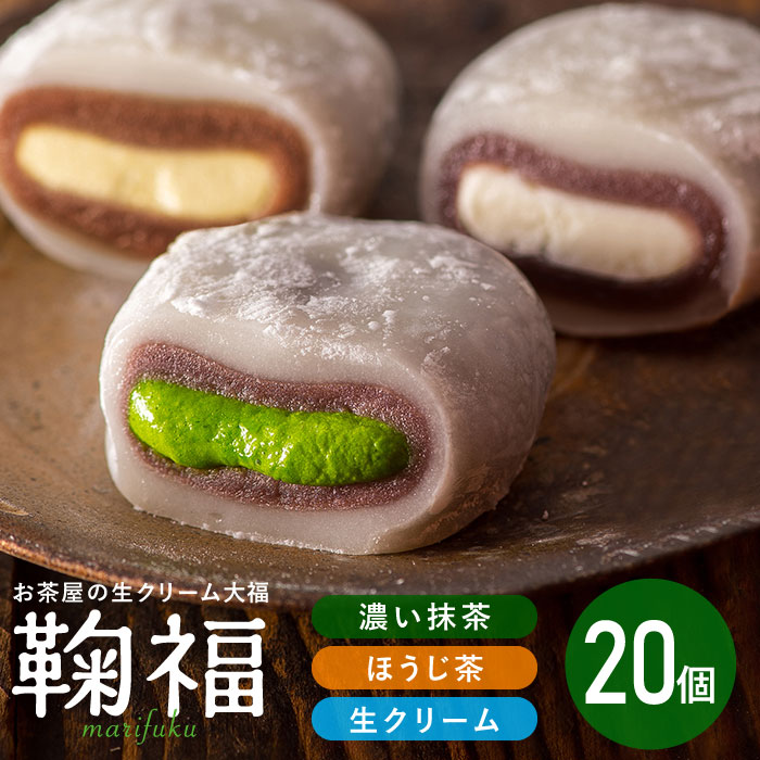 【冷凍送料込】お茶屋の生クリーム大福 鞠福3種20個(濃い抹茶・ほうじ茶・生クリーム)