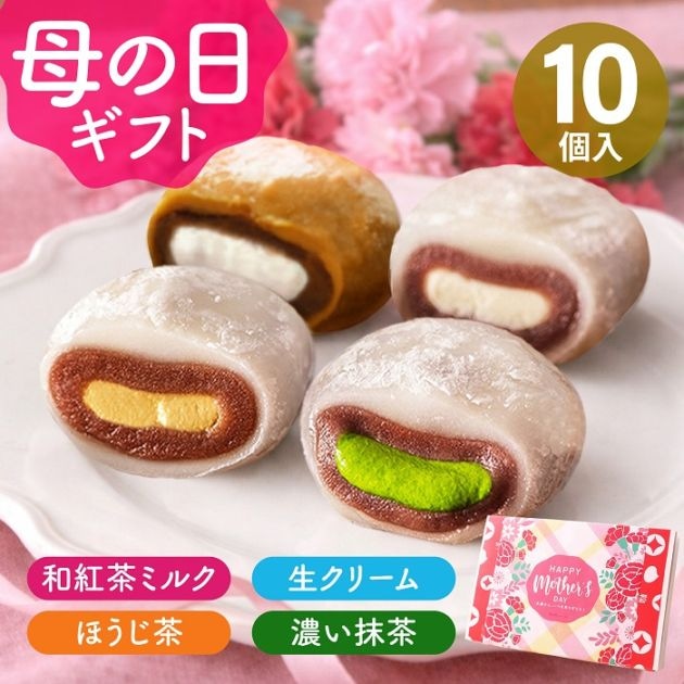 【冷凍送料込】生クリーム大福 鞠福4種10個入(濃い抹茶・ほうじ茶・生クリーム・和紅茶)